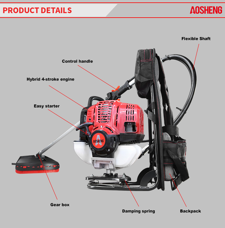 পেশাদার ইঞ্জিন, শক্তি শক্তি। কম খরচ, শুরু করা সহজ। 360° ঘুরছে মেরু অংশ একটি ড্যাম্পার কভার ব্যবহার করে। কন্ট্রোল হ্যান্ডেল শোষণ কমাতে 180° ঘোরাতে পারে। রাবার-ঢাকা হ্যান্ডলগুলি ব্যবহারকারীদ...