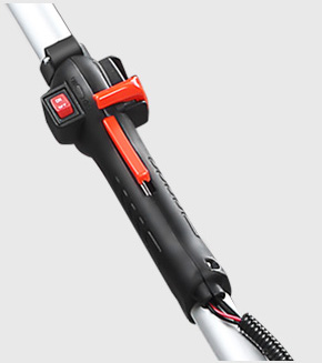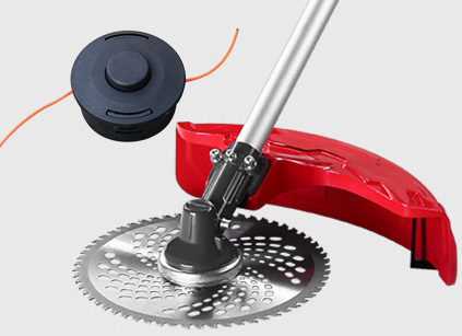 আরামদায়ক নিয়ন্ত্রণ হ্যান্ডেল এবং স্পঞ্জ বেল্ট। ট্রিমার হেড একটি 460 মিমি কাটা প্রস্থ অফার করতে পারে। খাদ ব্লেডের ব্যাস 10 ইঞ্চি।
