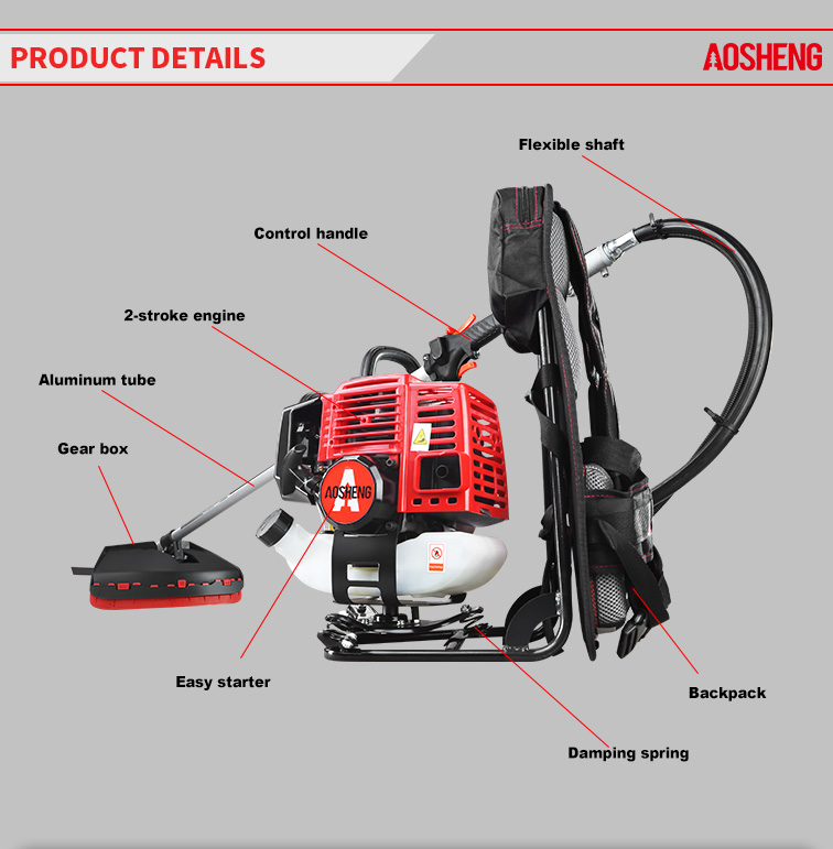 পেশাদার ইঞ্জিন, শক্তি শক্তি। কম খরচ, শুরু করা সহজ। 360° ঘুরছে মেরু অংশ একটি ড্যাম্পার কভার ব্যবহার করে। কন্ট্রোল হ্যান্ডেল শোষণ কমাতে 180° ঘোরাতে পারে। রাবার-ঢাকা হ্যান্ডলগুলি ব্যবহারকারীদ...
