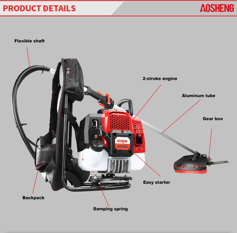 উচ্চ-কর্মক্ষমতা 4-স্ট্রোক ইঞ্জিন, স্থানচ্যুতি হল 38CC। উন্মুক্ত বর্জ্যভূমিতে পেশাগত ব্যবহার টিউব আকার 26mm*1.5mm, শক্তি নমনীয় খাদ. কাটিং প্রস্থ হল 420 মিমি লাইফ টাইম 150 ঘন্টার বেশি নত...