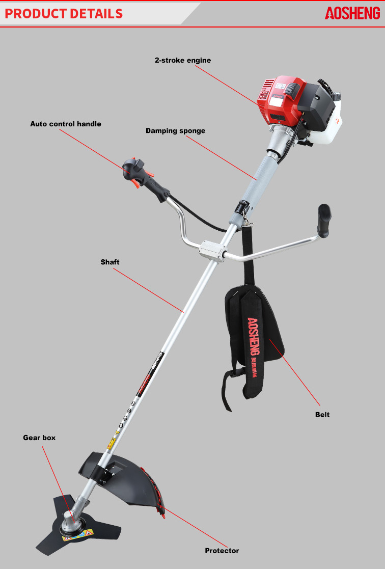 উচ্চ-কর্মক্ষমতা 4-স্ট্রোক ইঞ্জিন, স্থানচ্যুতি হল 38CC। উন্মুক্ত বর্জ্যভূমিতে পেশাগত ব্যবহার টিউব আকার 26mm*1.5mm, শক্তি নমনীয় খাদ. কাটিং প্রস্থ হল 420 মিমি লাইফ টাইম 150 ঘন্টার বেশি নত...