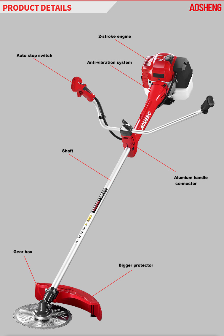 উচ্চ-কর্মক্ষমতা 4-স্ট্রোক ইঞ্জিন, স্থানচ্যুতি হল 38CC। উন্মুক্ত বর্জ্যভূমিতে পেশাগত ব্যবহার টিউব আকার 26mm*1.5mm, শক্তি নমনীয় খাদ. কাটিং প্রস্থ হল 420 মিমি লাইফ টাইম 150 ঘন্টার বেশি নত...